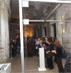 Проект «Инверсия» в Гатчинском дворце, открывающий биеннале, отсылает нас к идее путешествия в пространстве. Стеклянный куб, установленный в Чесменской галерее дворца, оборудован интерактивным устройством, позволяющим выбирать любую эпоху, в том числе и нынешнюю. Старинные изображения, как и ход реставрационных работ, проецируются на один из фрагментов стены, воссоздавая его исторический вид, меняющийся на протяжении более двух сотен лет. Автор проекта, архитектор Андрей Вовк, не случайно дал ему такое название. Инверсия – буквально, «переворачивание смысла» – позволяет переставить местами объекты наблюдения или размышления, включая самого себя. Мы привыкли разглядывать экспонаты в музее через стекло витрины. А что если попробовать самому стать таким экспонатом? А вдруг запустятся глубинные механизмы «памяти», возможно, свойственной любой вещи, переходящей из столетия в столетие? Тогда возникает интересный вопрос: а хочет ли сама вещь – например, старинная лепнина или полуразрушенная стена галереи – вернуться в исходное состояние? И какую именно эпоху можно считать точкой такого отсчета, если даже в лучшие времена интерьеры того же Гатчинского дворца менялись в соответствии со вкусами и предпочтениями очередного владельца?