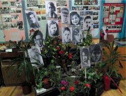 Второй раздел посвящен истории школы, ее выпускникам и учителям. Эта экспозиция ежегодно пополняется – каждый выпуск оставляет на память альбом с фотографиями. В музее представлены сведения о героически погибших при исполнении воинского долга в Чечне учащихся школы – Павле Фетисове и Станиславе Чухнине.