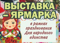 13.00 - 17.00 - Выставка – ярмарка, посвященная Дню народного единства.