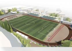 По проекту старое футбольное поле будет заменено на новое с искусственным покрытием, будут обустроены новые легкоатлетические дорожки, ограждение, освещение, установлены современные крытые трибуны с подтрибунными помещениями, оборудованы легкоатлетический сектор для прыжков в высоту и в длину, а также комплексная игровое площадка.