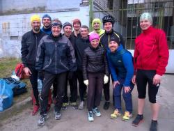 По пути нас догнала на велосипеде Татьяна Маслова. Она недавно вернулась из Италии, где бежала сутки за команду России и была лучшей в российской команде среди женщин. С ее слов сутки прошли не совсем удачно для нее, и она набежала всего «211 км». Но это подтверждение норматива ЗМС!!! Пожелаем ей удачи в Москве на Чемпионате России в мае.