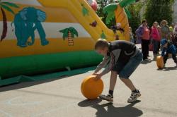 Мальчишки и девчонки катали муляж сыра так азартно, что присутствующий на представлении глава города, председатель Совета депутатов Виталий Андреевич ФИЛОНЕНКО тоже решил попробовать и даже получил поощрительный приз.