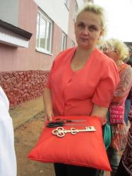 В назначенный день перерезать красную ленточку на ул. Строителей, д. 14 пришли будущие хозяева – дети из хореографического образцового коллектива «Фантазия», представители Школы третьего возраста, а также администрация Сиверского г/п и дарители.